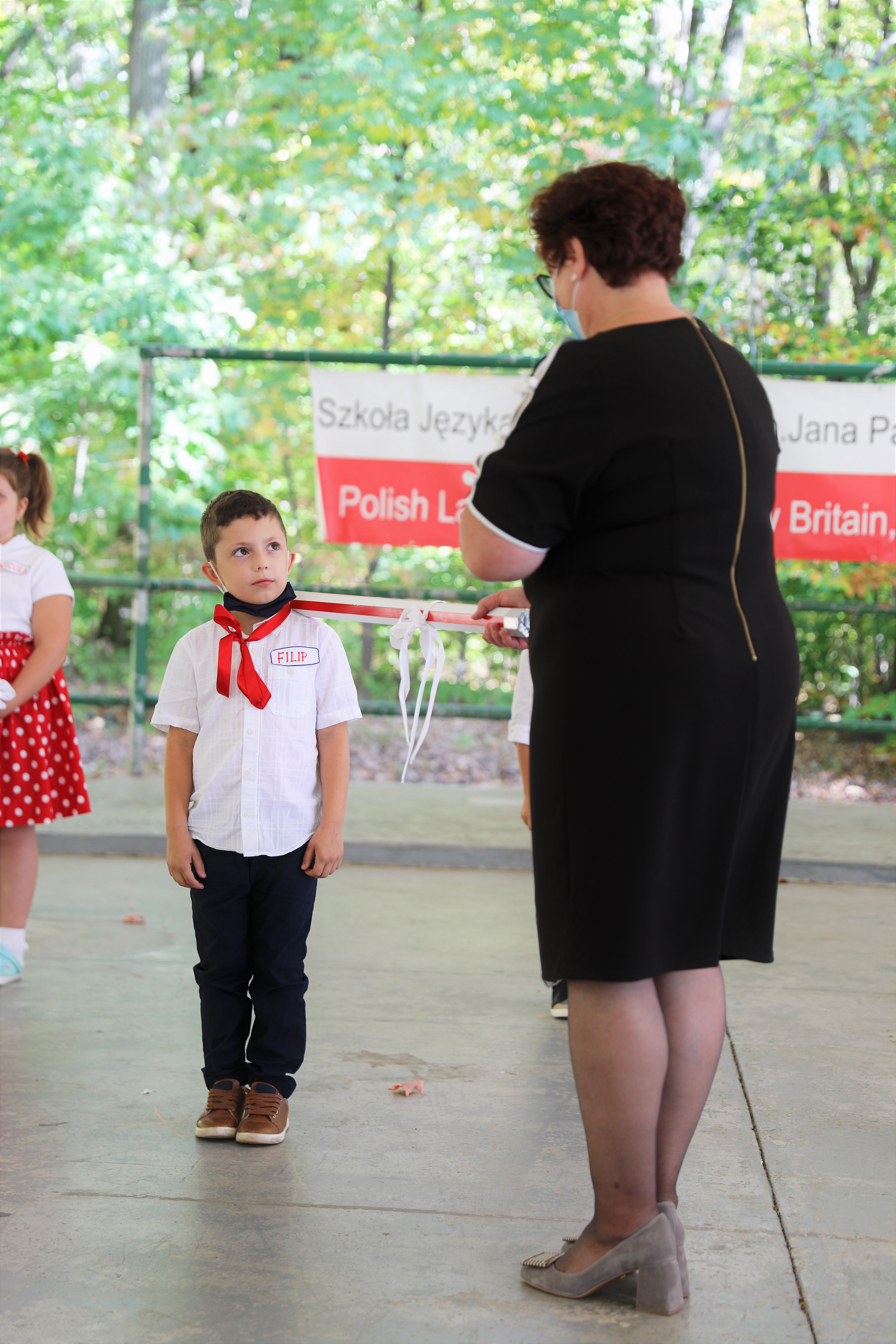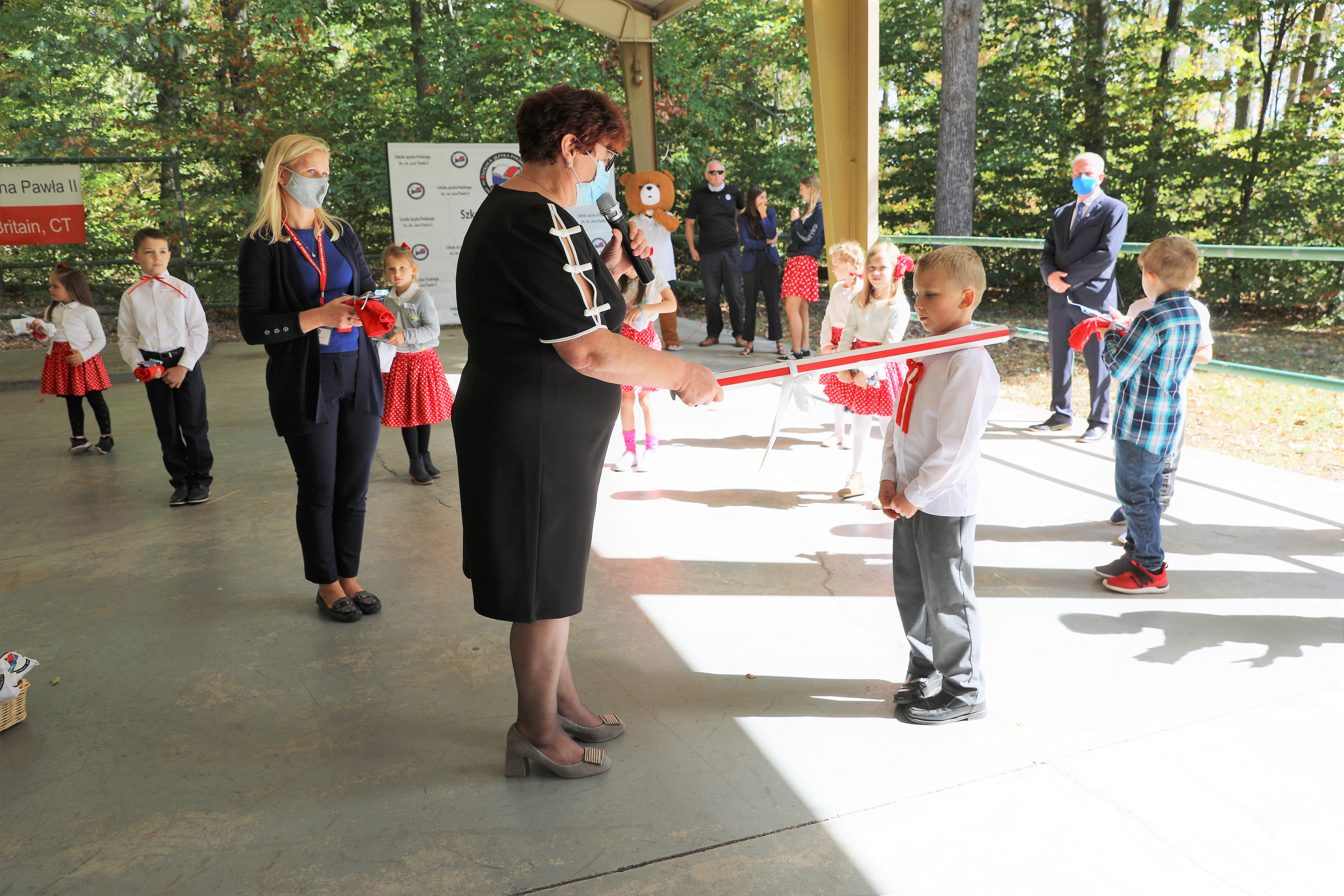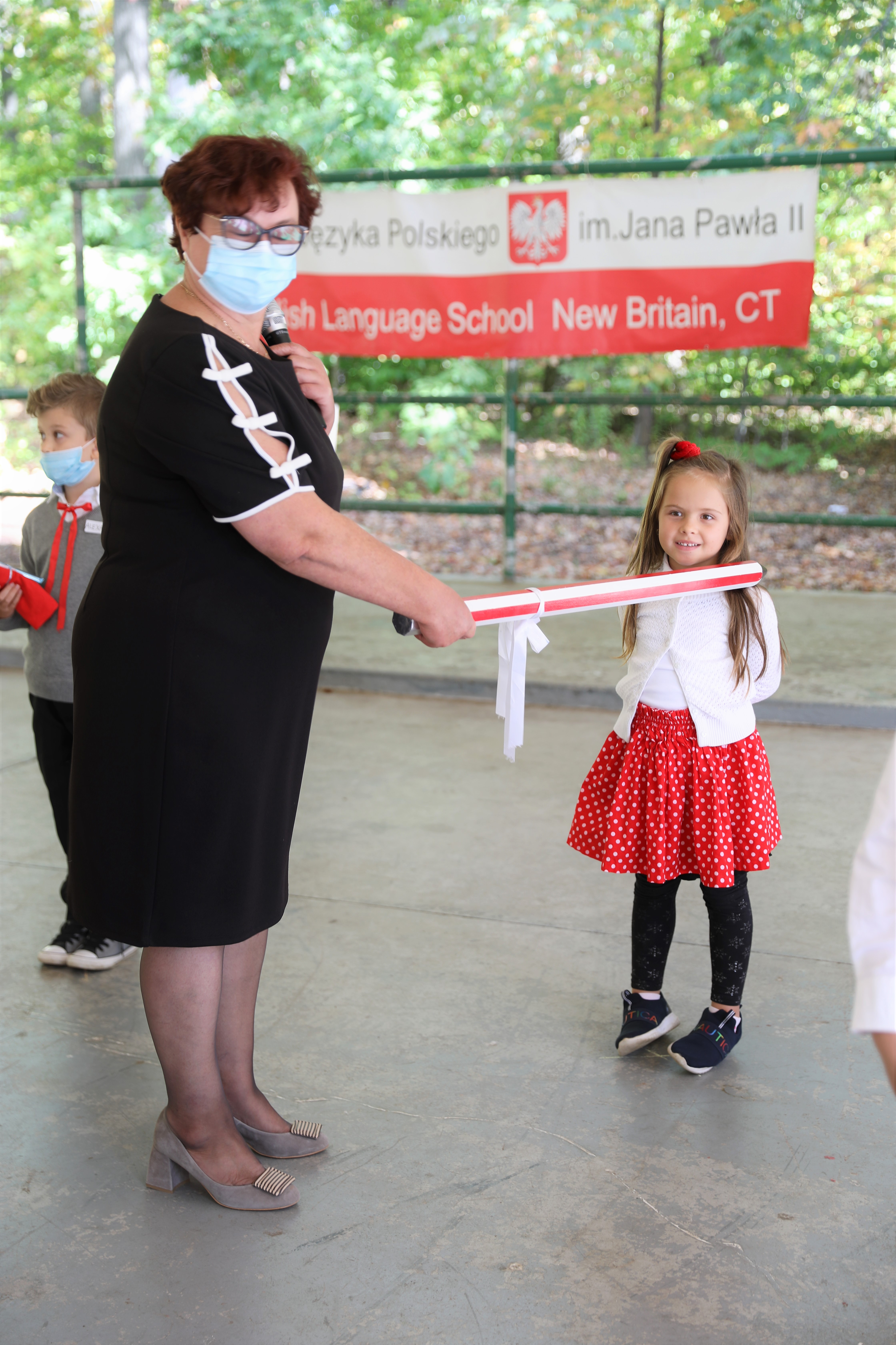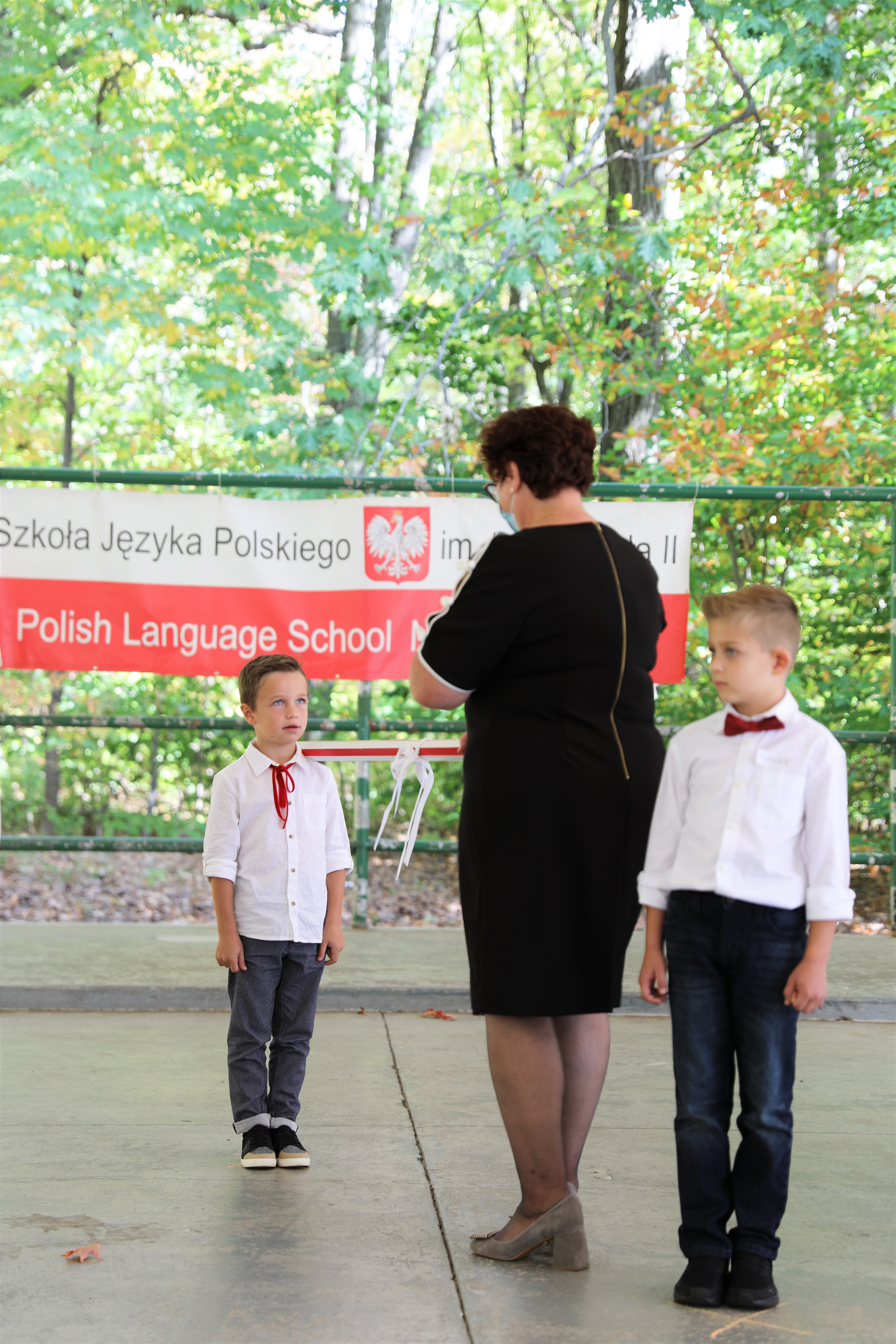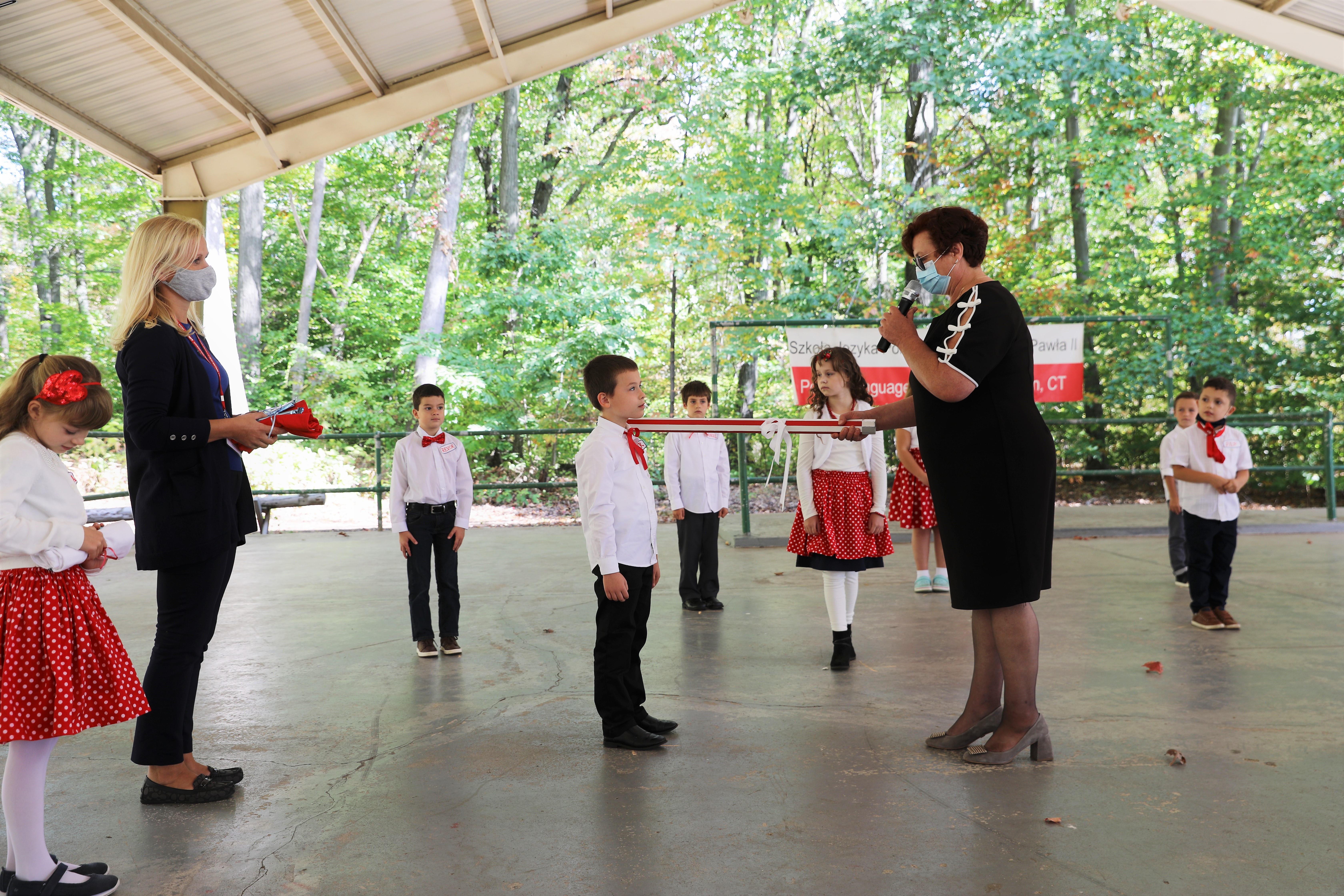 Chociaż jesteśmy w USA, to chciałoby się powiedzieć, że polska złota jesień rozpieszcza nas swoimi kolorami i ciepłymi promieniami słońca. Wokół czerwono, pomarańczowo, żółto i brązowo, a na Polance w New Britain, CT nadal biało-czerwono. To wszystko za sprawą naszych uczniów, którzy pilnie uczą się języka polskiego i z uśmiechem przychodzą do “zielonej szkoły”. W dodatku pierwszoklasiści odświętnie ubrali się w biało-czerwone stroje, aby dumnie złożyć przysięgę pierwszaka i zostać pasowanym na ucznia. Pani Dyrektor Elżbieta Złotnik dokonała pasowania naszym szkolnym zaczarowanym ołówkiem, dzięki któremu każdy pierwszoklasista zamienił się w prawdziwego ucznia. Od tej pory każdy z nich ma prawa ucznia, ale też jego obowiązki. Wszyscy obiecali, że będą pilnie uczyć się języka polskiego i zawsze z szerokim uśmiechem na buzi przychodzić do szkoły. Wystarczy spojrzeć na miny pasowanych pierwszaków, aby przekonać się jak ważne wydarzenie spotkało ich tego dnia. Również ich rodzice z dumą obserwowali uroczystość i niektórym nawet popłynęła łezka szczęścia i niedowierzania, że ich maluszki z takim przejęciem przyjęły na siebie nowe obowiązki.