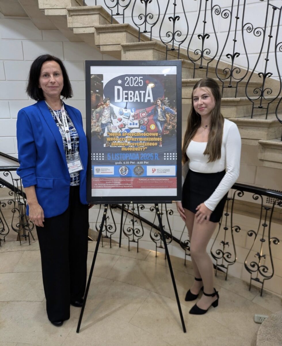 Uczennica klasy 9a, Amanda Szwed, jest jedyną uczennicą, która reprezentowała polonijne szkoły ze stanu Connecticut podczas Debaty Młodych “Media społecznościowe – wróg czy sprzymierzeniec zdrowia psychicznego młodzieży?”. Debata oxfordzka zorganizowana przez Centrala Polskich Szkół Dokształcających miała miejsce w gościnnych progach Fundacji Kościuszkowskiej w NYC.