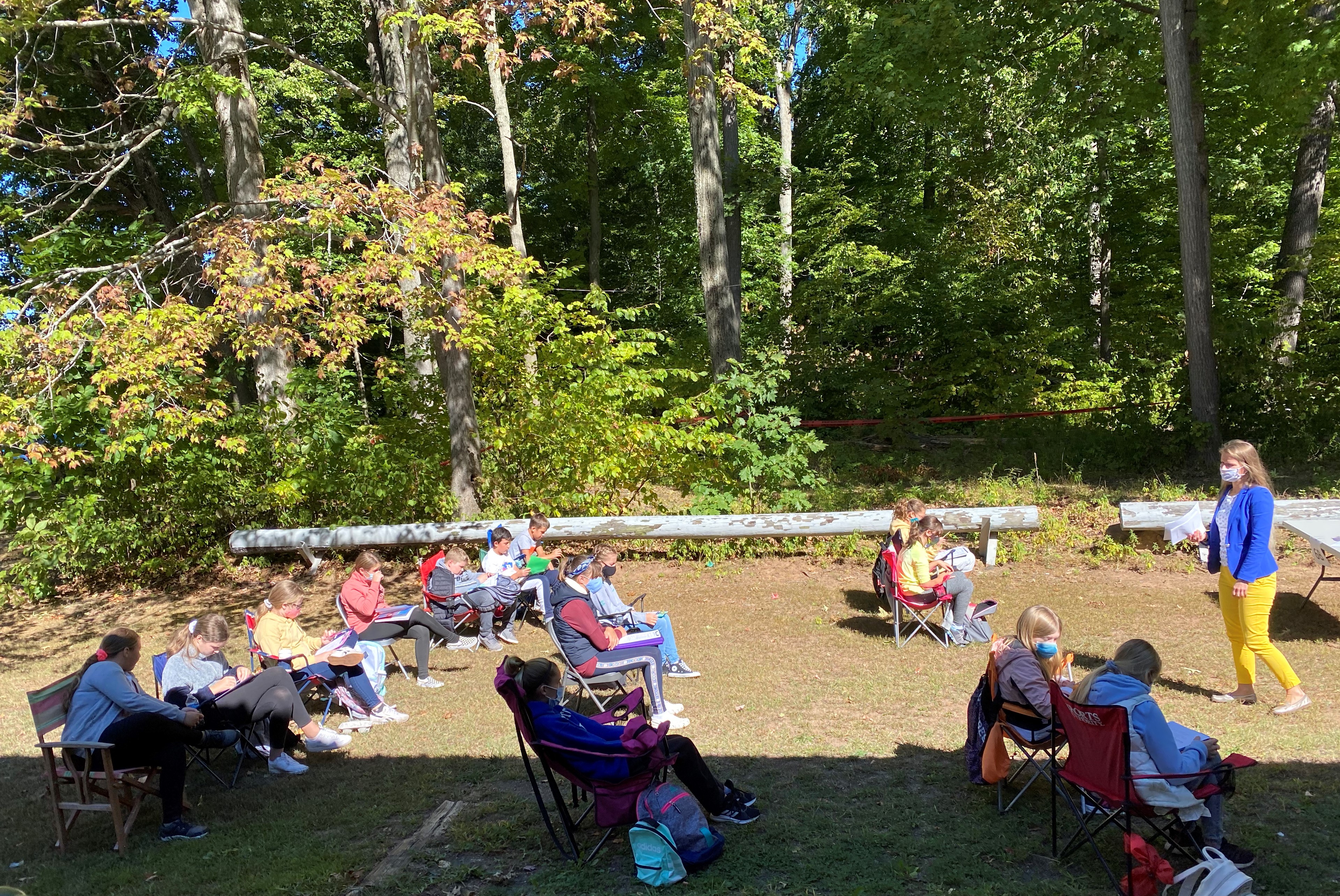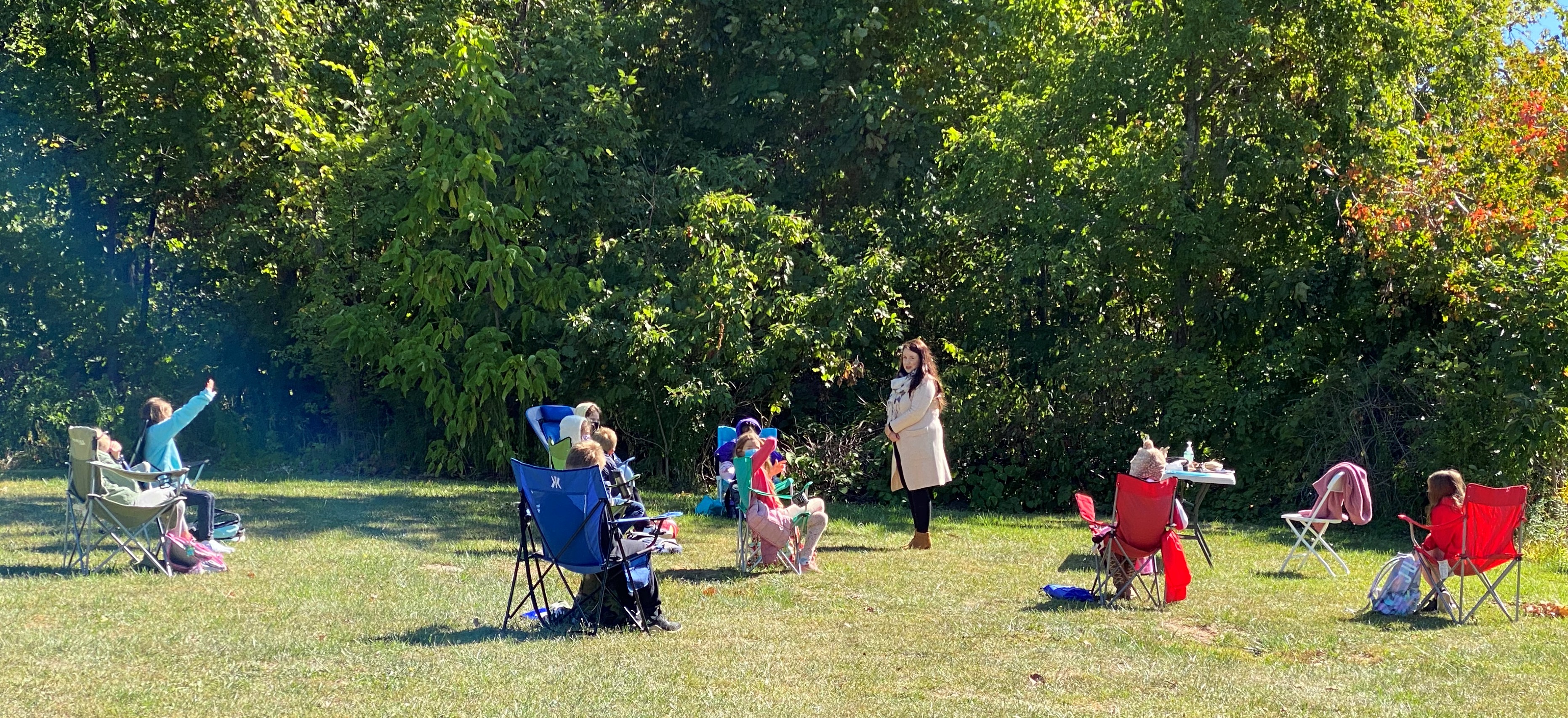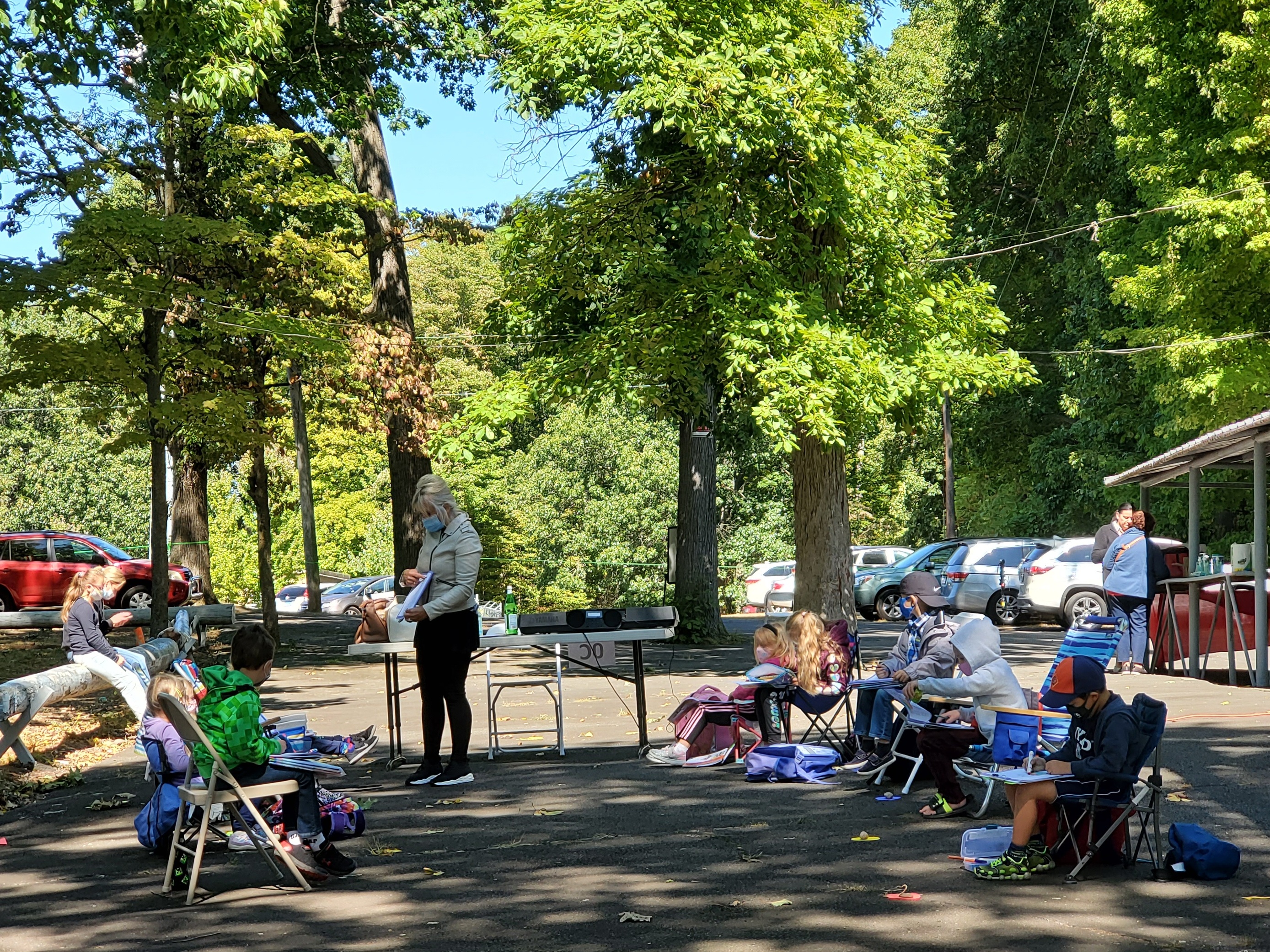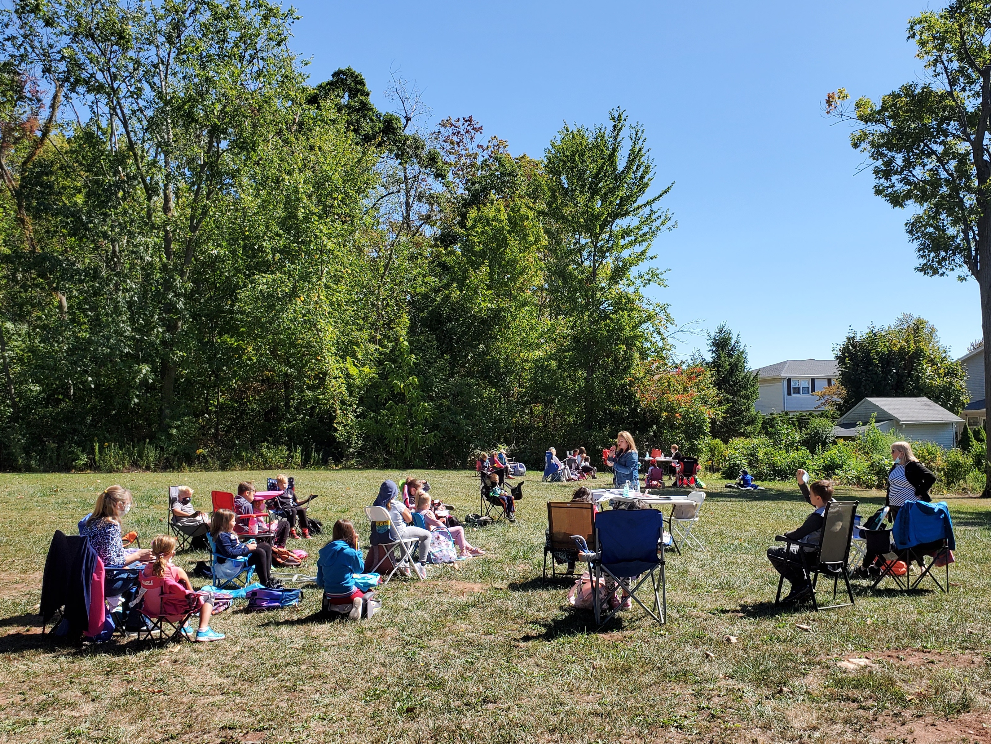 Kilkuset uczniów Szkoły Języka Polskiego im. św. Jana Pawła II zaczęło kolejny rok przygody z językiem polskim. Wrześniowe słoneczko zachęca do przebywania na świeżym powietrzu, więc czemu z tego nie skorzystać? Zamiast uczyć się w szkole lub online dotleniamy nasze głowy podczas spotkań na Polance w New Britain, CT. Tutaj 12 września rozpoczęliśmy rok szkolny 2020/2021. Tydzień później w tym samym miejscu odbyły się pierwsze zajęcia. Nasza “zielona szkoła” cieszyła się ogromnym powodzeniem i zostawi nam w głowach kolejne niepowtarzalne wspomnienia. Sala lekcyjna otoczona zielenią lasu, pachnąca nadchodzącą jesienią, oświetlana i ogrzewana promieniami dopołudniowego słońca. Czy można sobie wymarzyć lepsze miejsce do zgłębiania sekretów historii i geografii Polski oraz szlifowania znajomości naszego ojczystego języka? Uśmiechnięte buzie naszych uczniów są najlepszą odpowiedzią na to pytanie. A najważniejsze, że po wielu miesiącach mogliśmy znowu spotkać się z naszymi polskimi przyjaciółmi i odświeżyć przykurzone znajomości. Trzymamy mocno kciuki, aby piękna pogoda dopisała jak najdłużej, abyśmy mogli spotykać się na Polance w następne jesienne soboty. Nasz tradycyjny dzwonek szkolny już nie może się doczekać, aby oznajmić uczniom początek następnej lekcji.