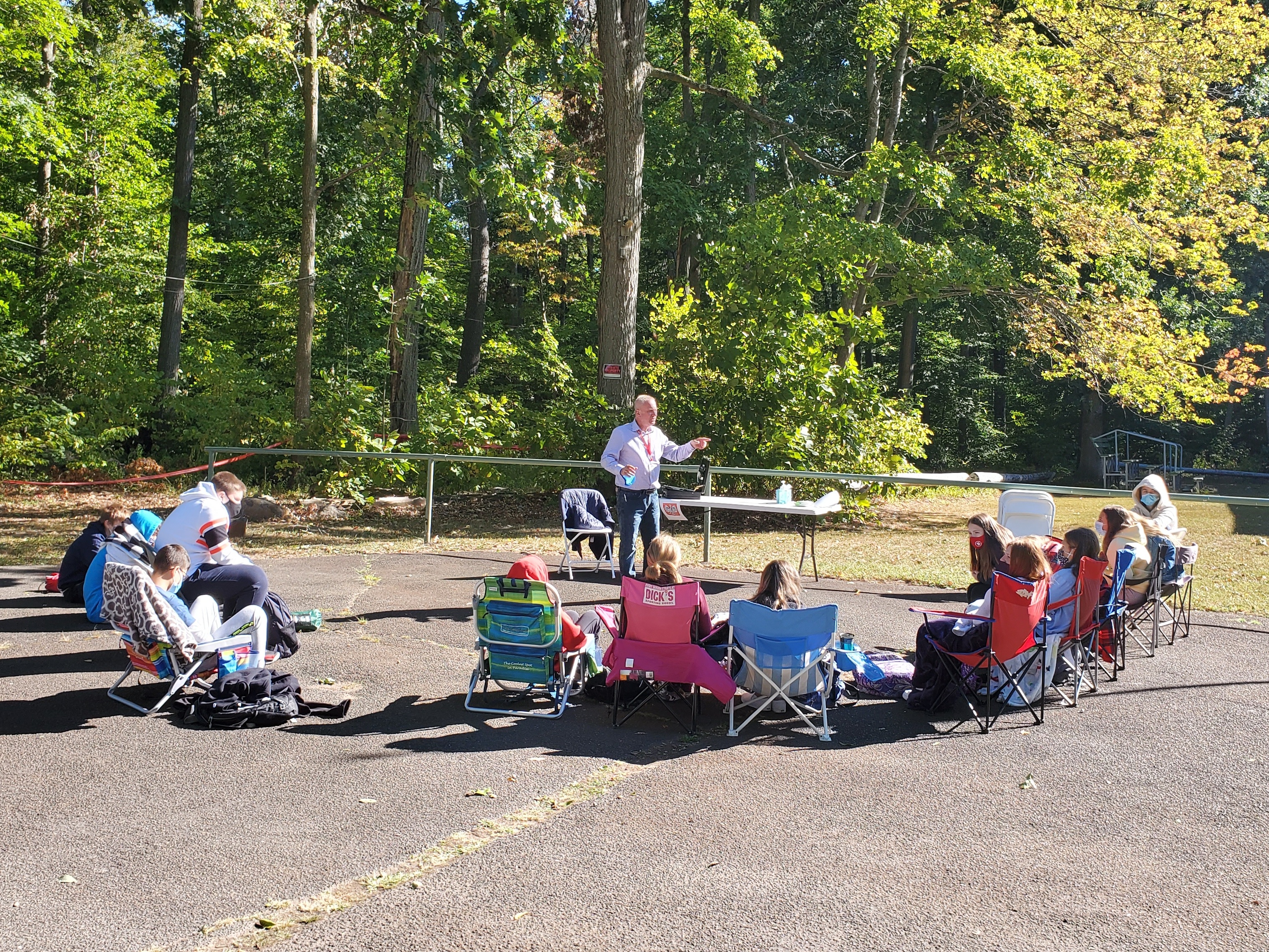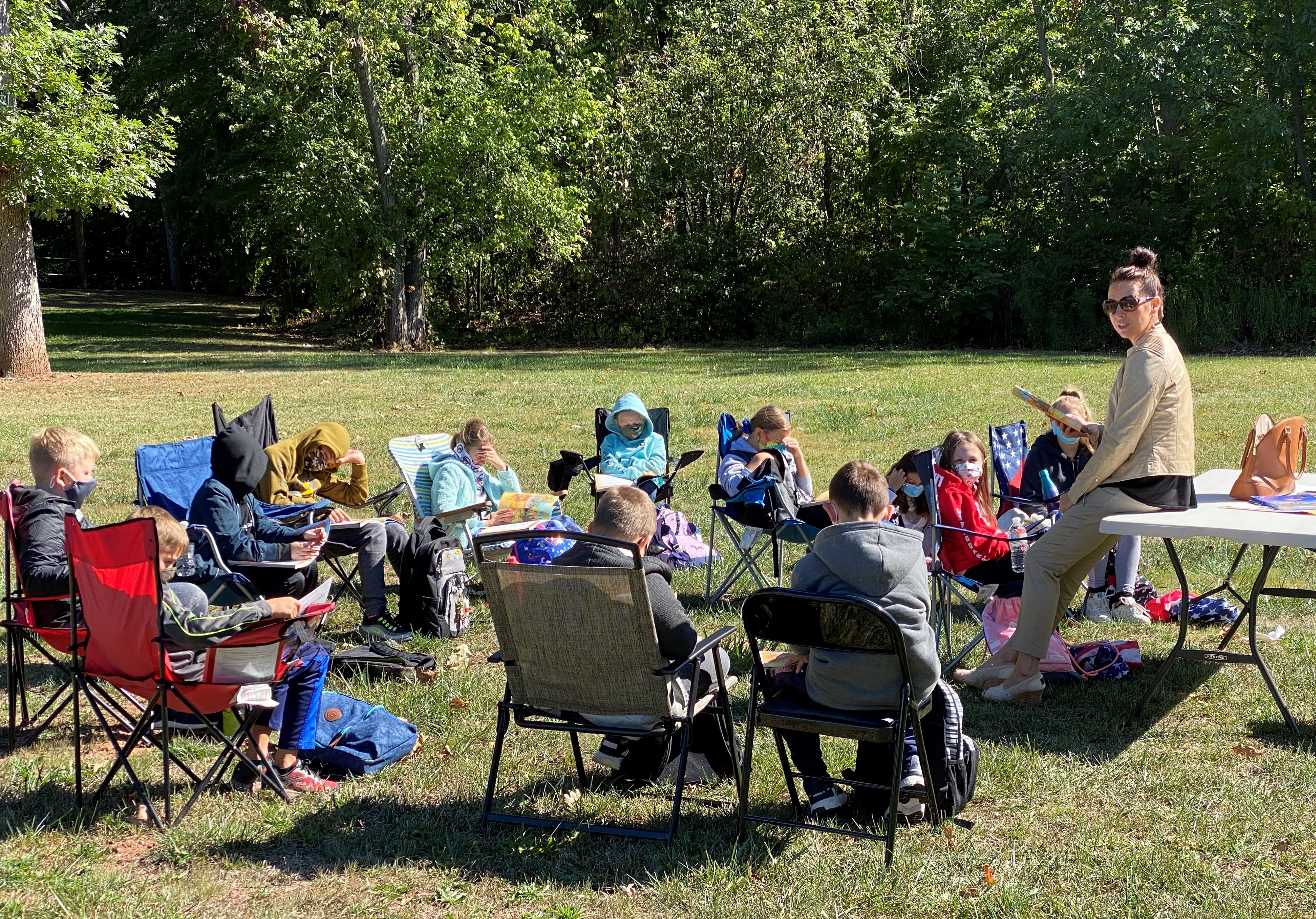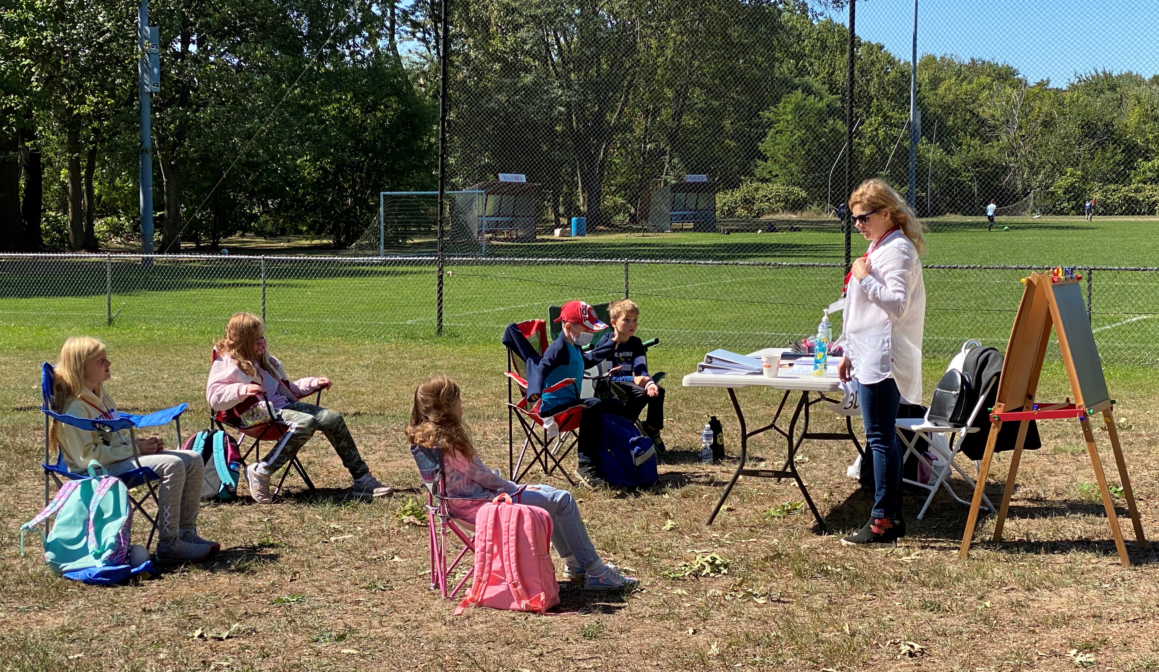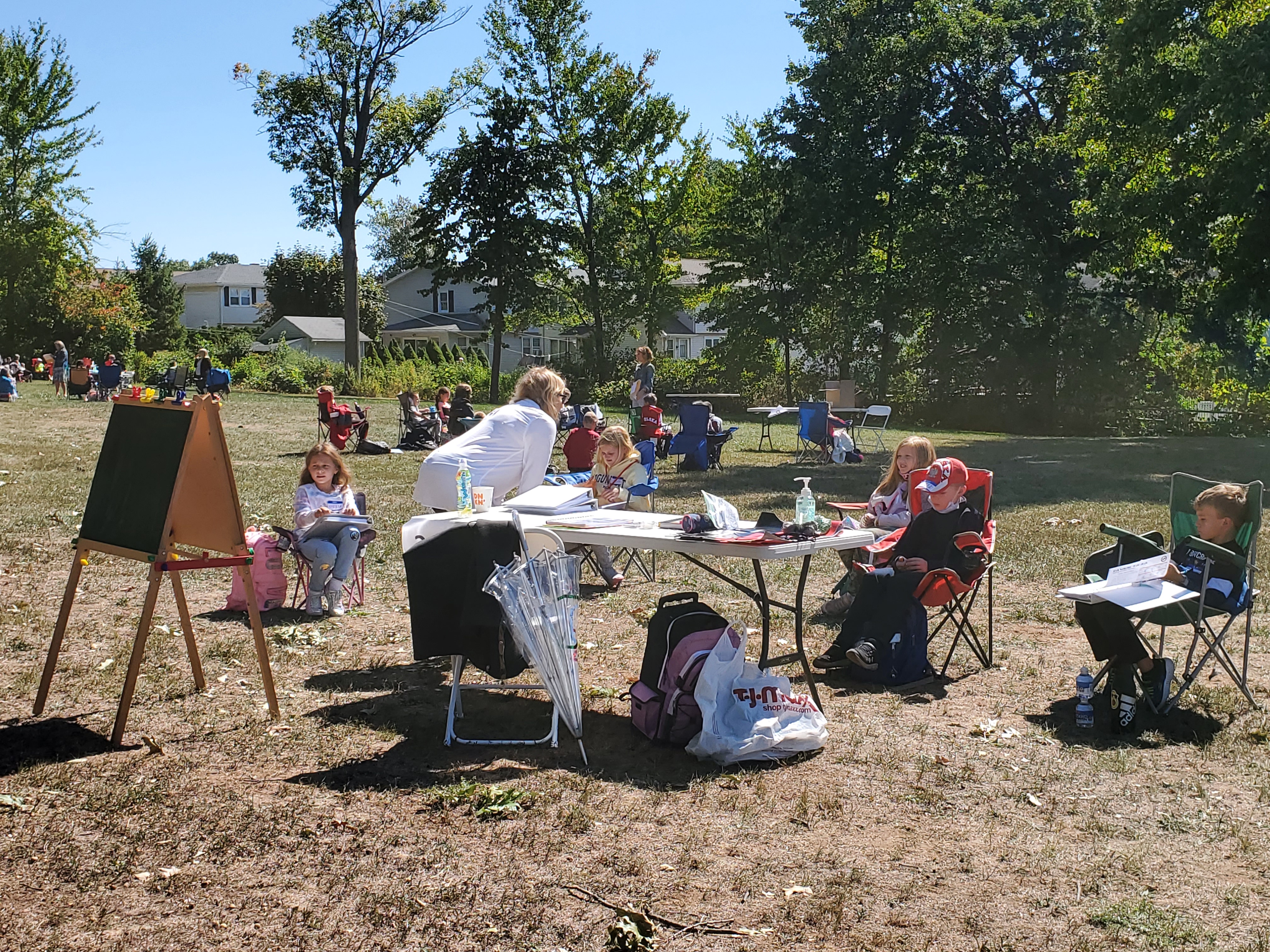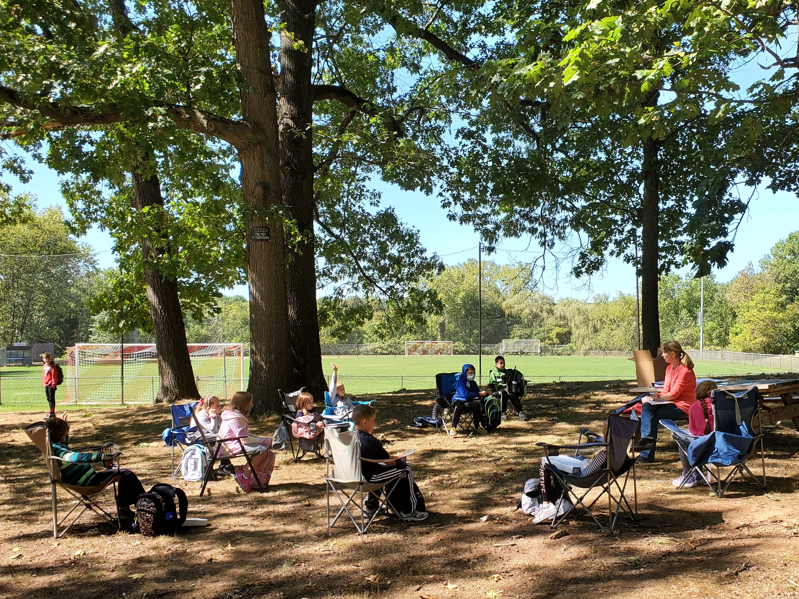 Kilkuset uczniów Szkoły Języka Polskiego im. św. Jana Pawła II zaczęło kolejny rok przygody z językiem polskim. Wrześniowe słoneczko zachęca do przebywania na świeżym powietrzu, więc czemu z tego nie skorzystać? Zamiast uczyć się w szkole lub online dotleniamy nasze głowy podczas spotkań na Polance w New Britain, CT. Tutaj 12 września rozpoczęliśmy rok szkolny 2020/2021. Tydzień później w tym samym miejscu odbyły się pierwsze zajęcia. Nasza “zielona szkoła” cieszyła się ogromnym powodzeniem i zostawi nam w głowach kolejne niepowtarzalne wspomnienia. Sala lekcyjna otoczona zielenią lasu, pachnąca nadchodzącą jesienią, oświetlana i ogrzewana promieniami dopołudniowego słońca. Czy można sobie wymarzyć lepsze miejsce do zgłębiania sekretów historii i geografii Polski oraz szlifowania znajomości naszego ojczystego języka? Uśmiechnięte buzie naszych uczniów są najlepszą odpowiedzią na to pytanie. A najważniejsze, że po wielu miesiącach mogliśmy znowu spotkać się z naszymi polskimi przyjaciółmi i odświeżyć przykurzone znajomości. Trzymamy mocno kciuki, aby piękna pogoda dopisała jak najdłużej, abyśmy mogli spotykać się na Polance w następne jesienne soboty. Nasz tradycyjny dzwonek szkolny już nie może się doczekać, aby oznajmić uczniom początek następnej lekcji.